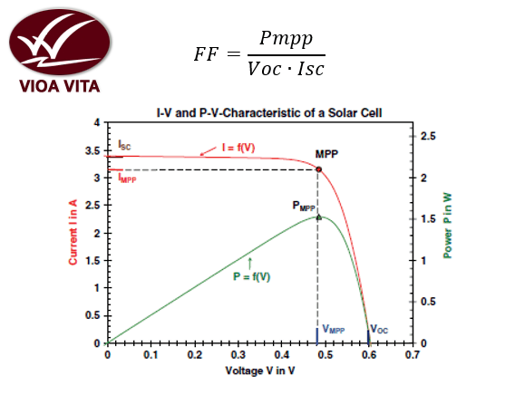 FF biểu thị đường cong I / V vuông như thế nào. Nói cách khác, nó thể hiện mức độ gần gũi của MPP với phép nhân của Vocal và Isc, đây là công suất tối đa theo lý thuyết mà tấm pin mặt trời có thể chịu được. Nếu FF càng lớn thì hiệu quả của tế bào càng lớn.